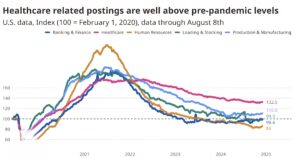 Private-sector momentum remains steady: as of September 2025, healthcare added an average of ~64,000 jobs per month, even as other sectors slow.